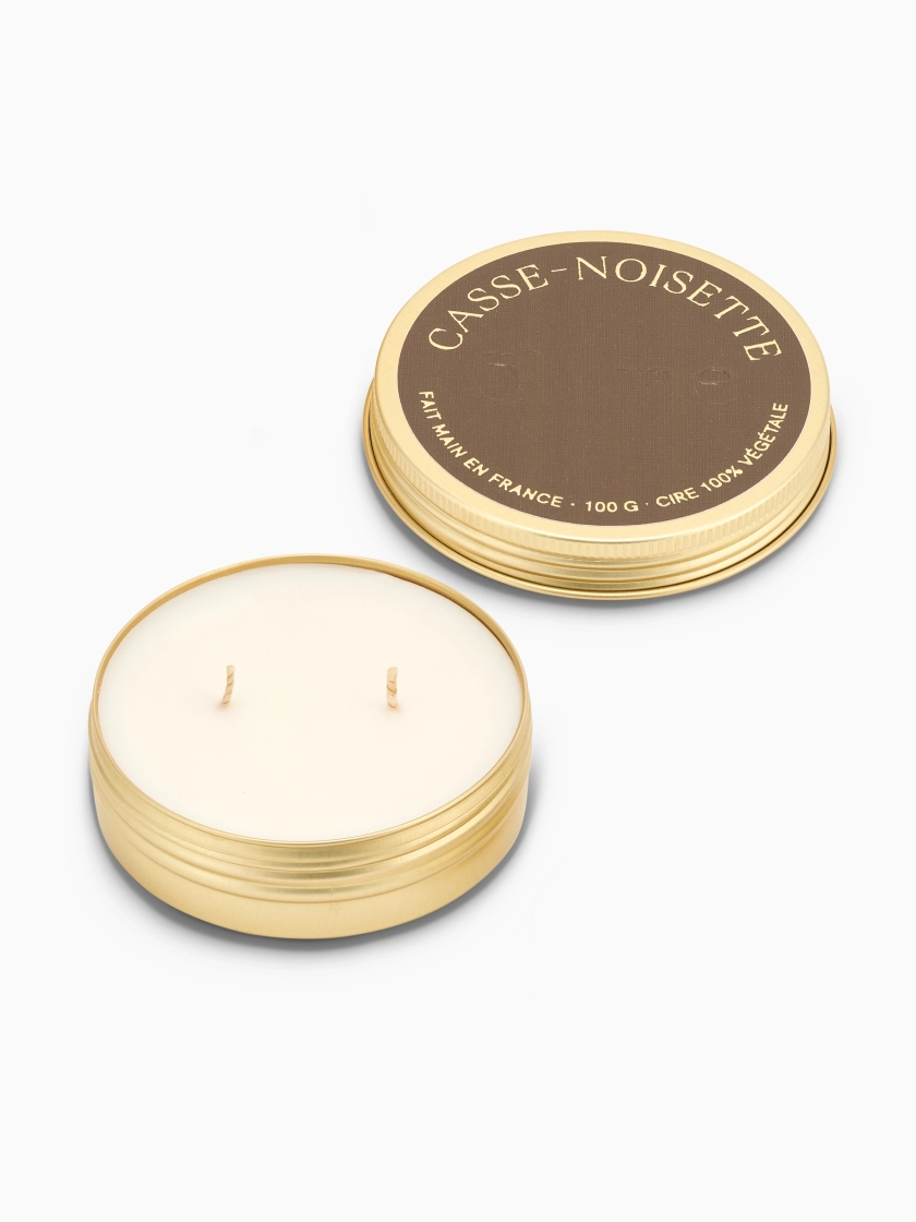 Notre bougie Casse-noisette, c’est ce souvenir d’enfance que l’on garde au creux du cœur : celui d’un plateau de douceurs posé sur une table de fêtes. Le parfum addictif de la noisette grillée, l’arôme réconfortant du caramel et la douceur lactée du chocolat.
