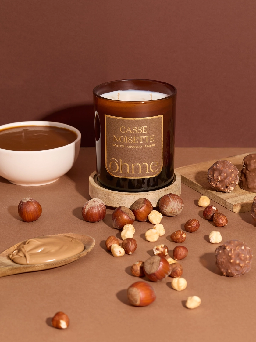 Avec notre bougie Casse-Noisette, plongez dans un univers enfantin et régressif. Un parfum rond au sillage intensément gourmand, pensé comme une bouchée de rocher praliné.