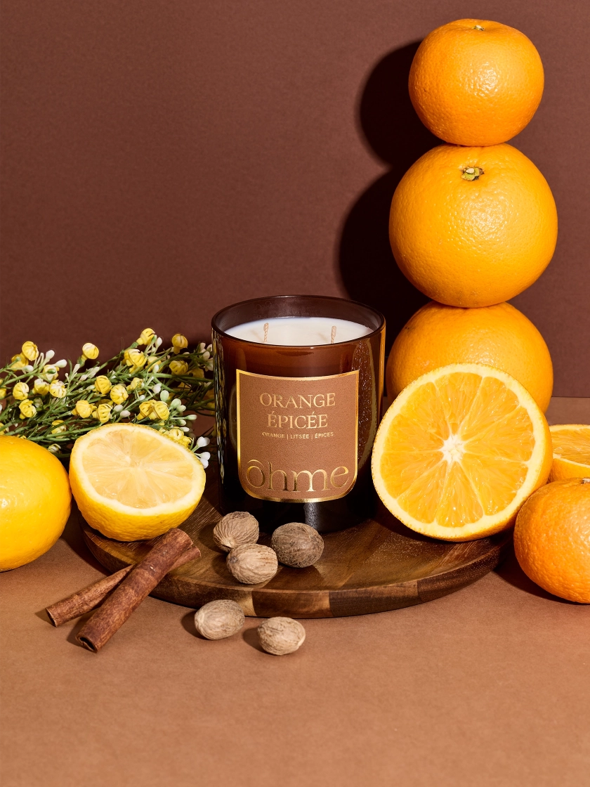 Notre bougie parfumée Orange Épicée est comme un souvenir des Noëls d’enfance, des décorations scintillantes et de l’odeur nostalgique des oranges qu’on épluche attablés en famille.