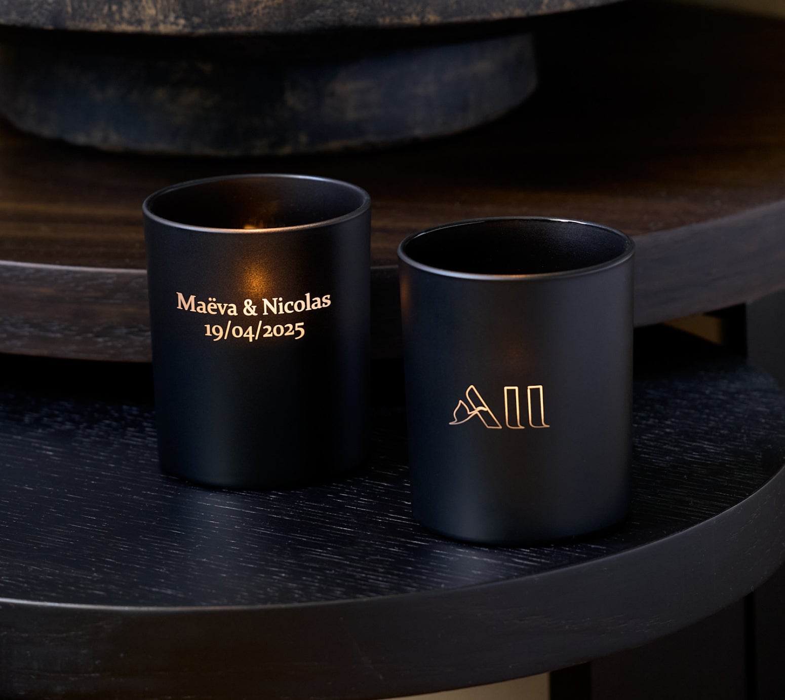 Bougie parfumées gravées sur-mesure pour votre évènement ou vos cadeaux d'entreprise