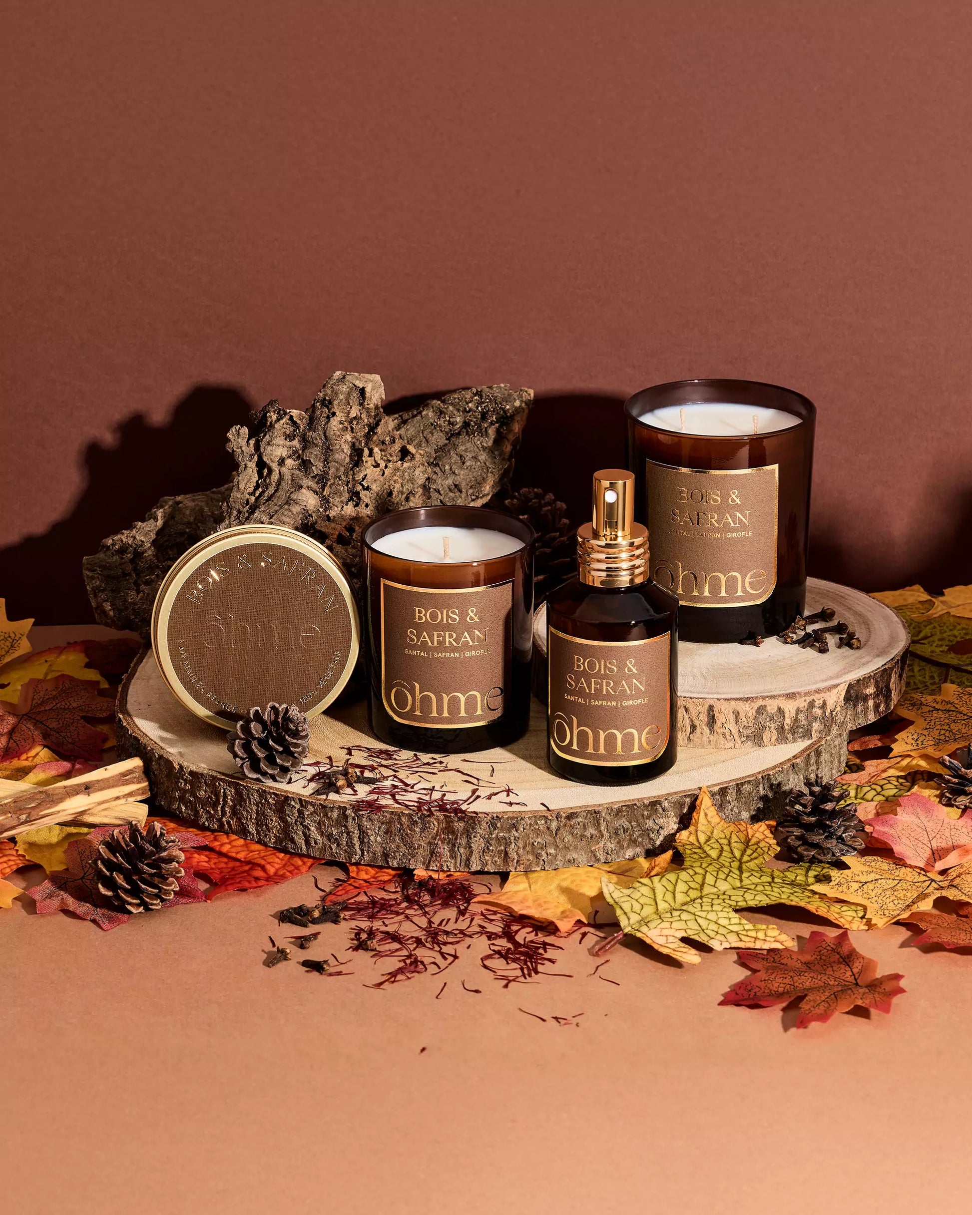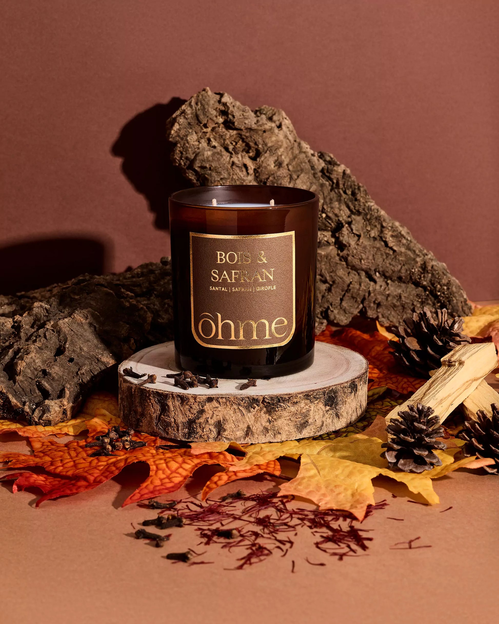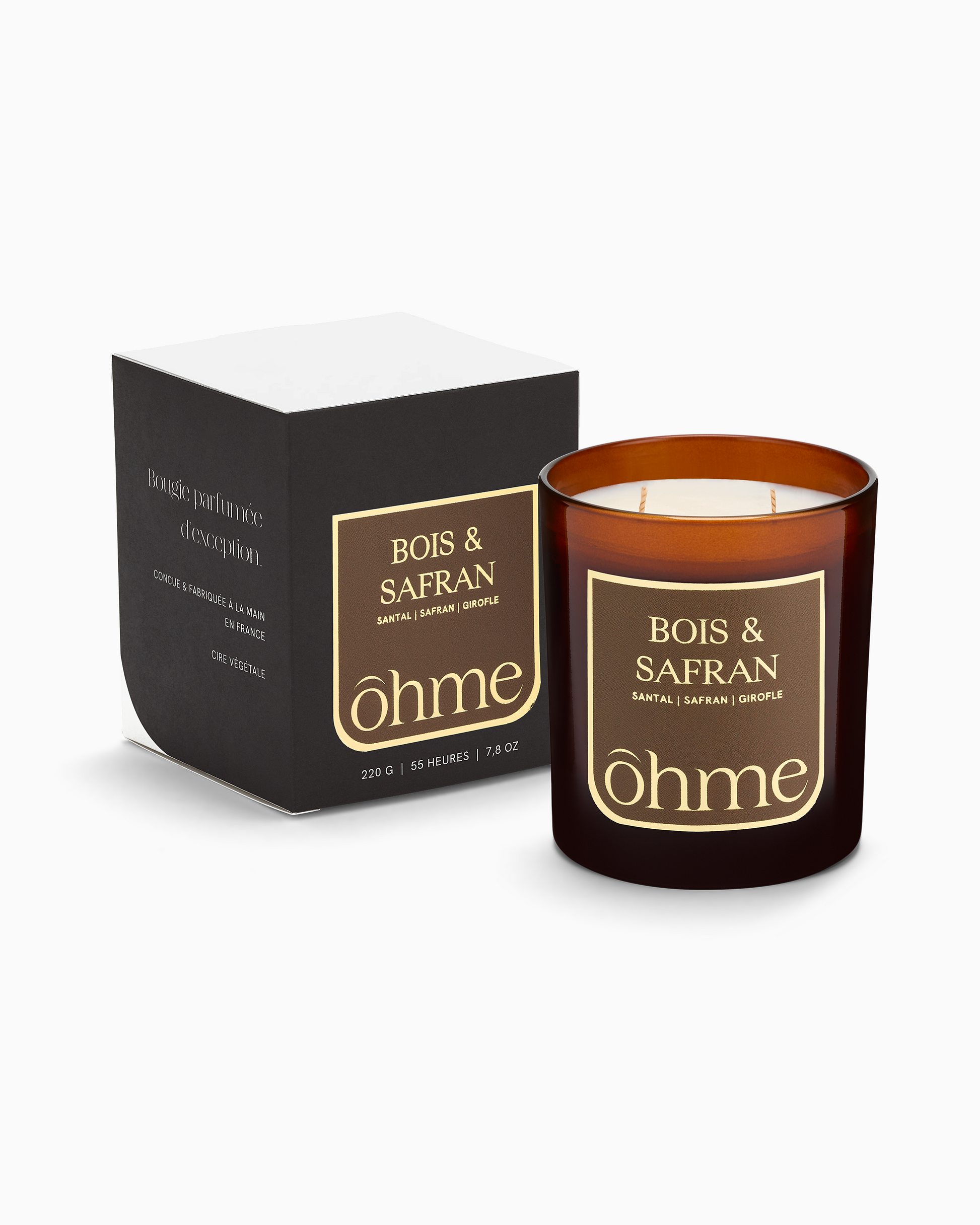 Présentée dans son joli pot en verre ambré, notre bougie parfumée Bois & Safran évoque ces journées qui raccourcissent et la beauté brute des saisons qui ralentissent, comme un moment volé au tumulte.