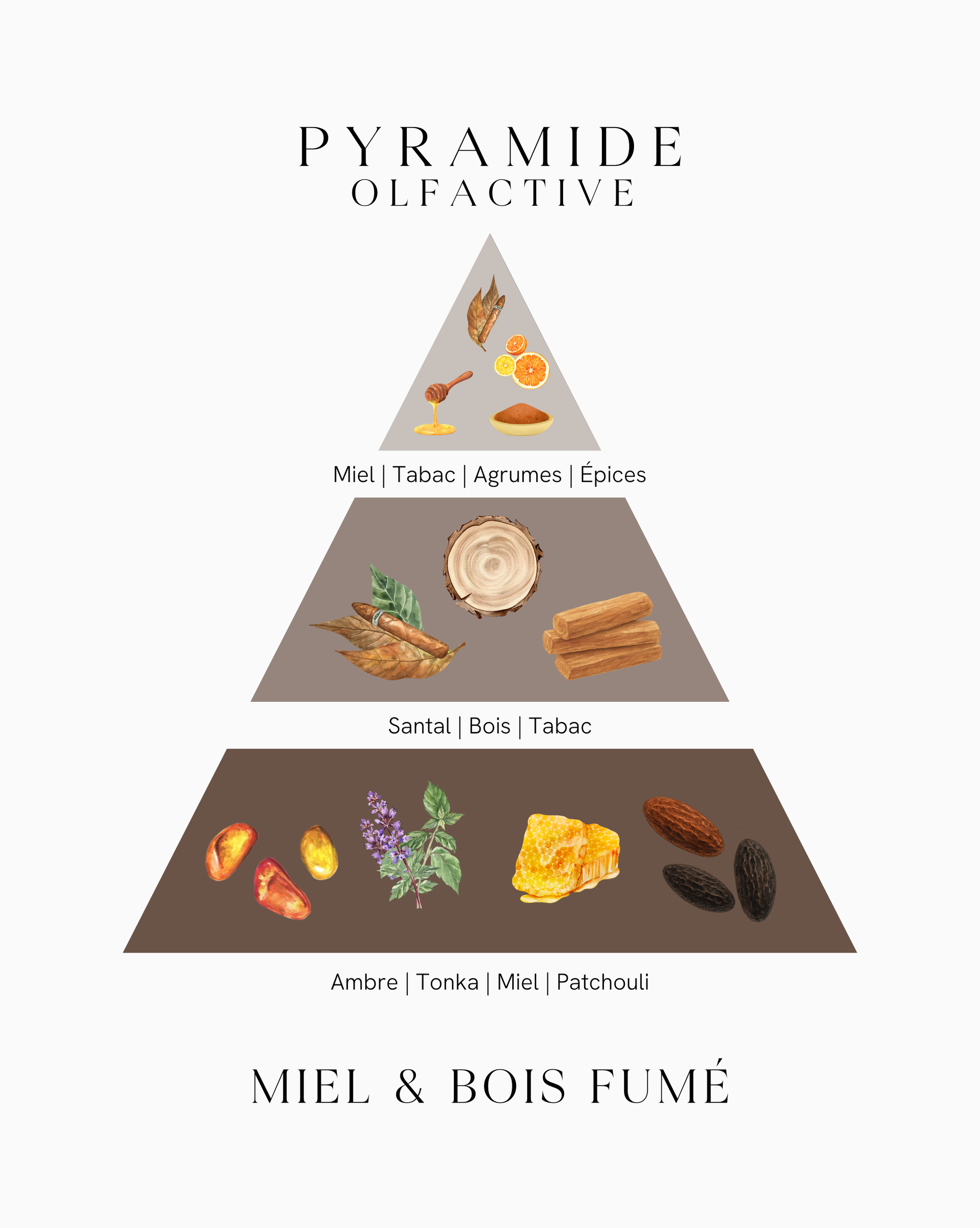 Imaginez une soirée d'hiver dans chalet luxueux, les ombres dansent doucement sous la lueur d'un feu crépitant. À chaque inspiration, l'air se remplit d'un arôme chaud et captivant, mariant le sucré du miel et les effluves fumés d'un bois ancien, créant une ambiance envoûtante et chaleureuse et transportant vos sens dans un univers de mystère et d'élégance.