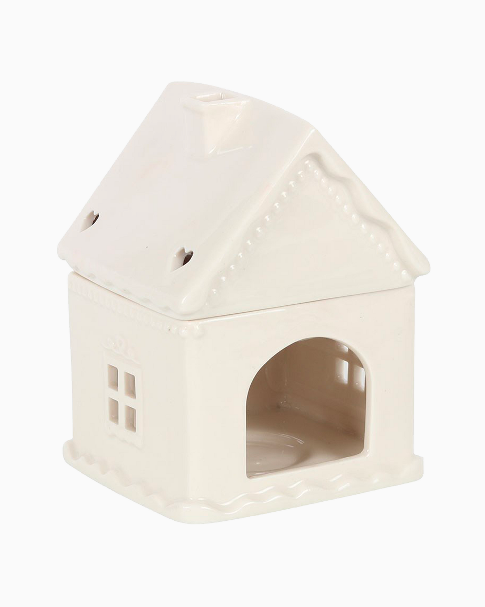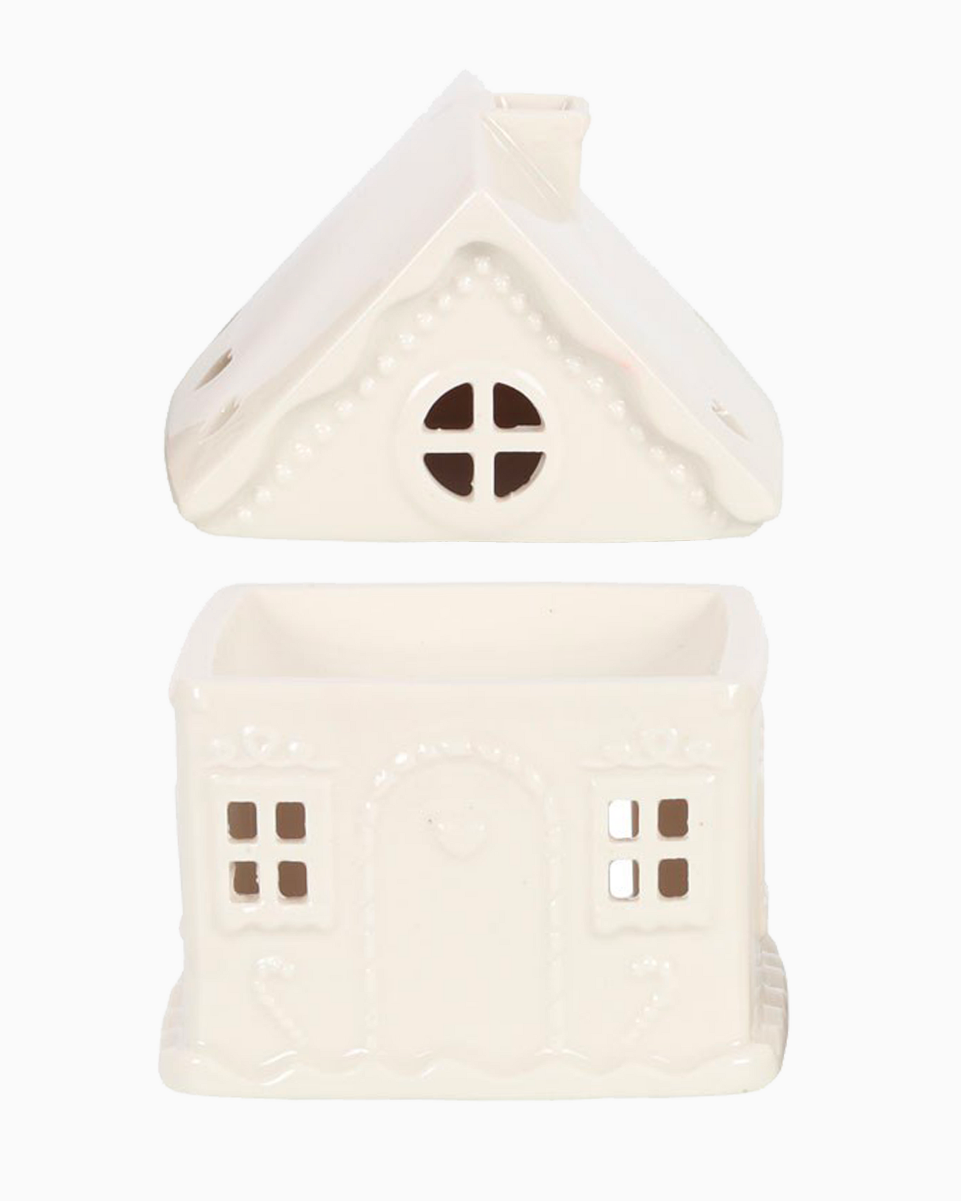 Ajoutez une touche festive à votre intérieur avec ce brûle-parfum en céramique blanc en forme de maison en pain d’épices.