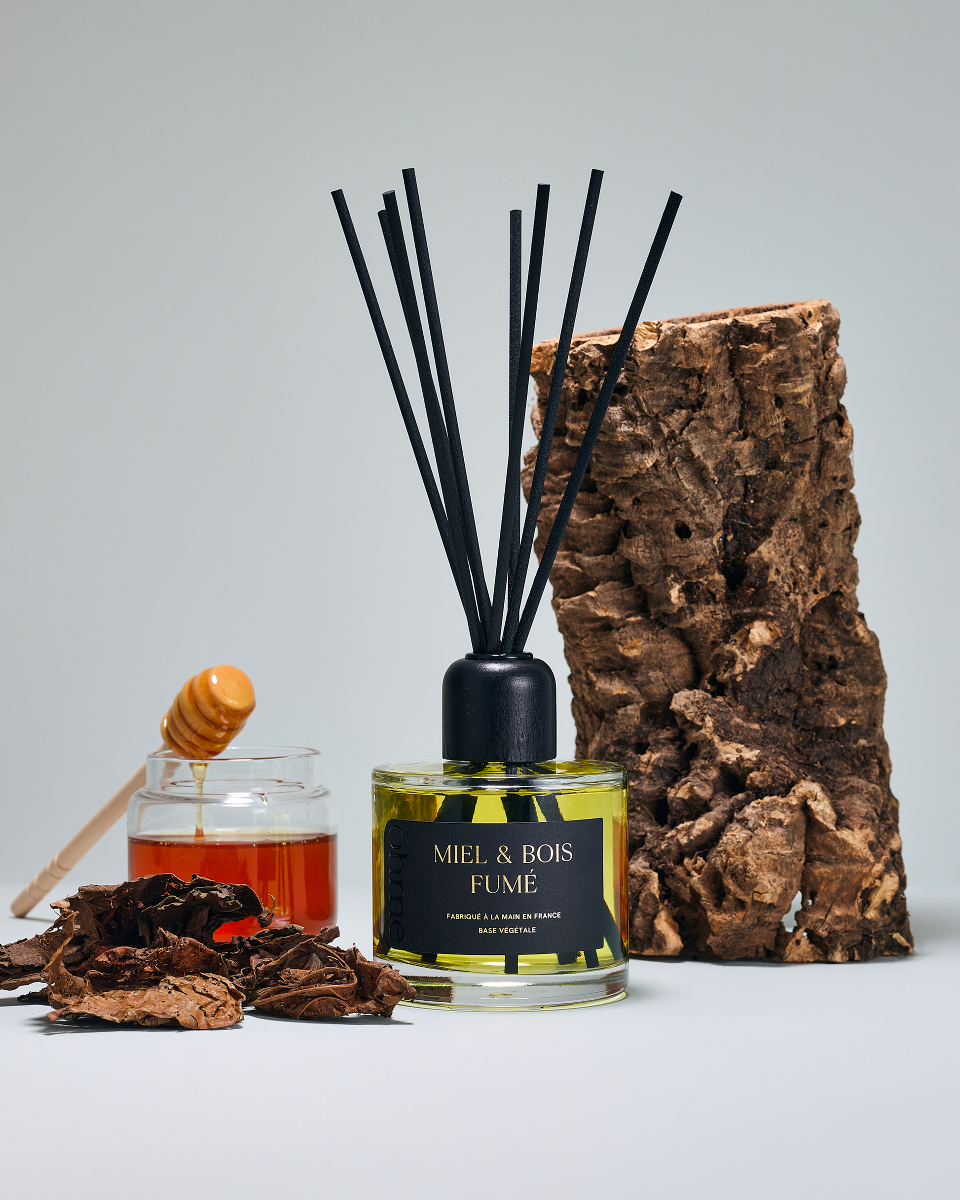 Découvrez le mystère et la chaleur de notre diffuseur de parfum Miel & Bois Fumé.