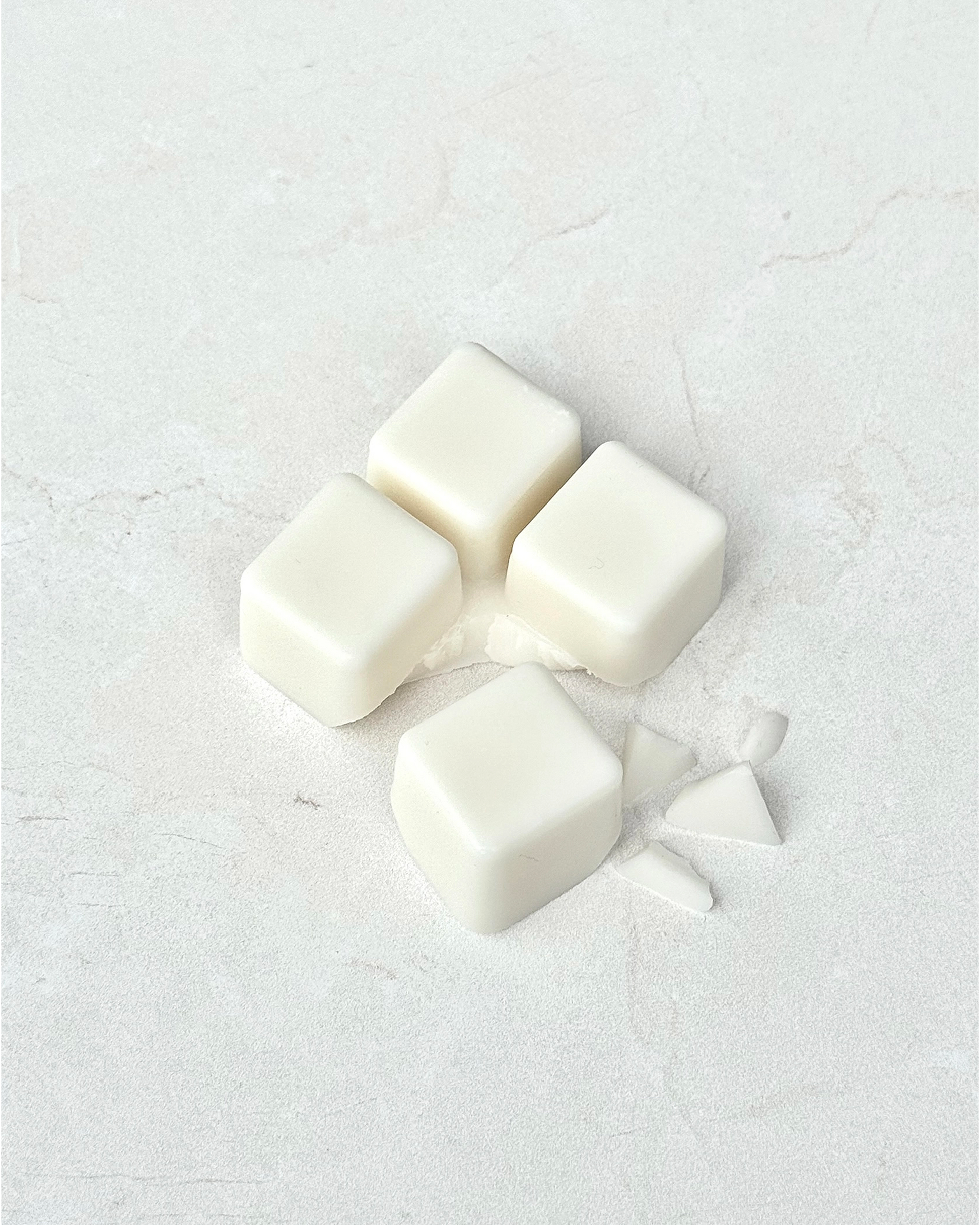 Tablette de 4 cubes de fondants parfumés en cire végétale sans OGM, fabriquée à la main en France. Chaque cube possède une durée de diffusion de 8 à 10 heures.